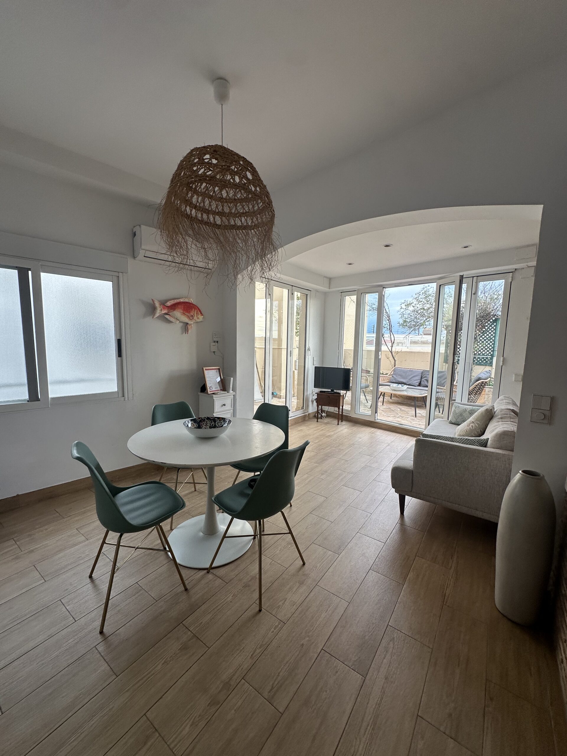 El interior mantiene una distribución equilibrada y cómoda. El salón conecta directamente con la terraza, potenciando la continuidad entre interior y exterior. La cocina está equipada para facilitar estancias medias con total autonomía. El dormitorio ofrece un ambiente recogido y confortable, mientras que el baño completo responde con practicidad a las necesidades del día a día.
