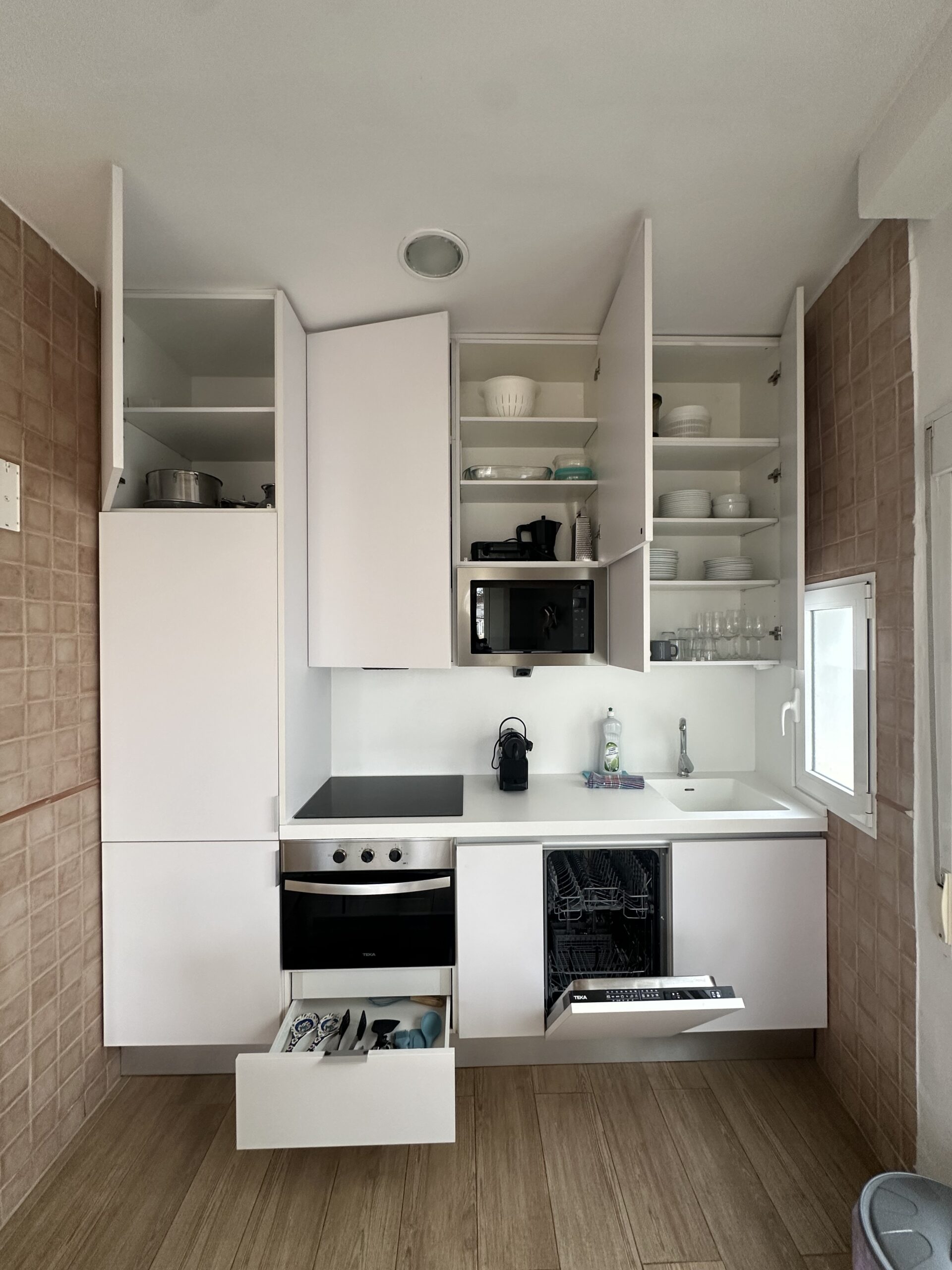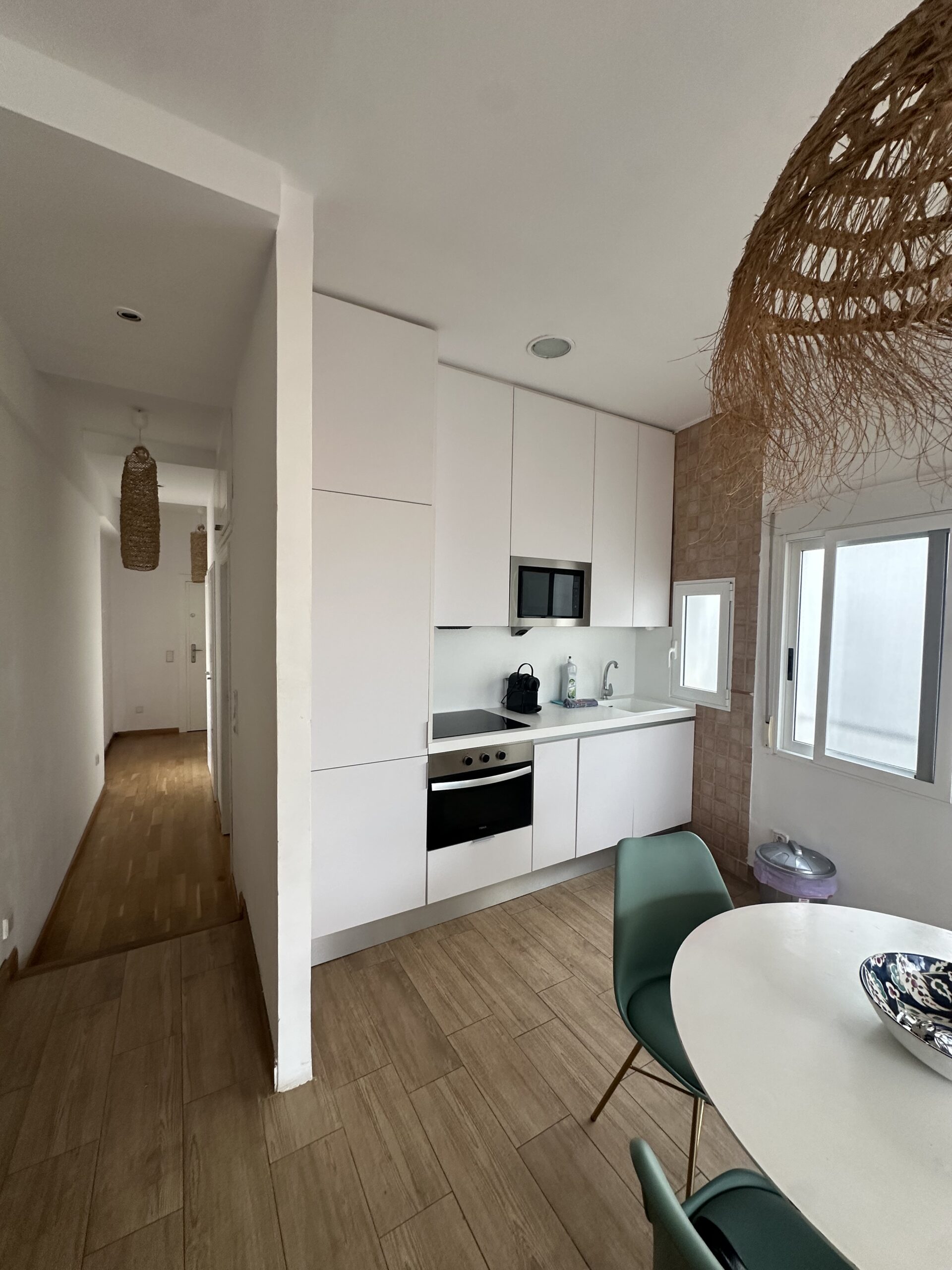 Ubicado en una décima planta, este estudio destaca por su altura y por la sensación de amplitud que transmite desde el primer momento. La luz natural entra con intensidad durante todo el día y las vistas abiertas sobre el centro urbano marcan una diferencia clara respecto a otras viviendas de la zona.