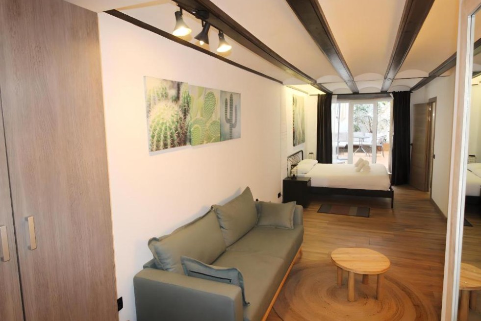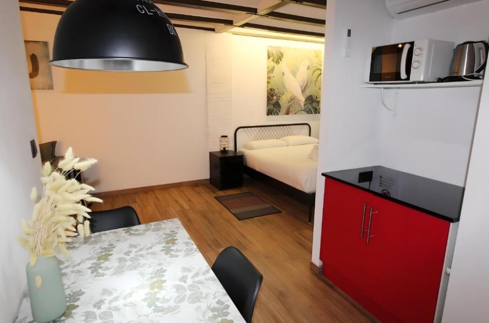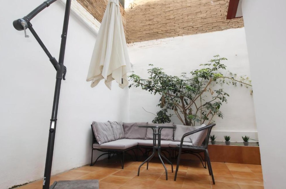 Situado en planta baja, este estudio destaca por su moderna decoración, luminoso ambiente y su acogedor patio privado, un elemento especialmente valorado en viviendas céntricas. El patio ofrece un espacio exterior propio donde disfrutar del aire libre con total privacidad provechando que el clima mediterráneo nos lo permite durante gran parte del año.
