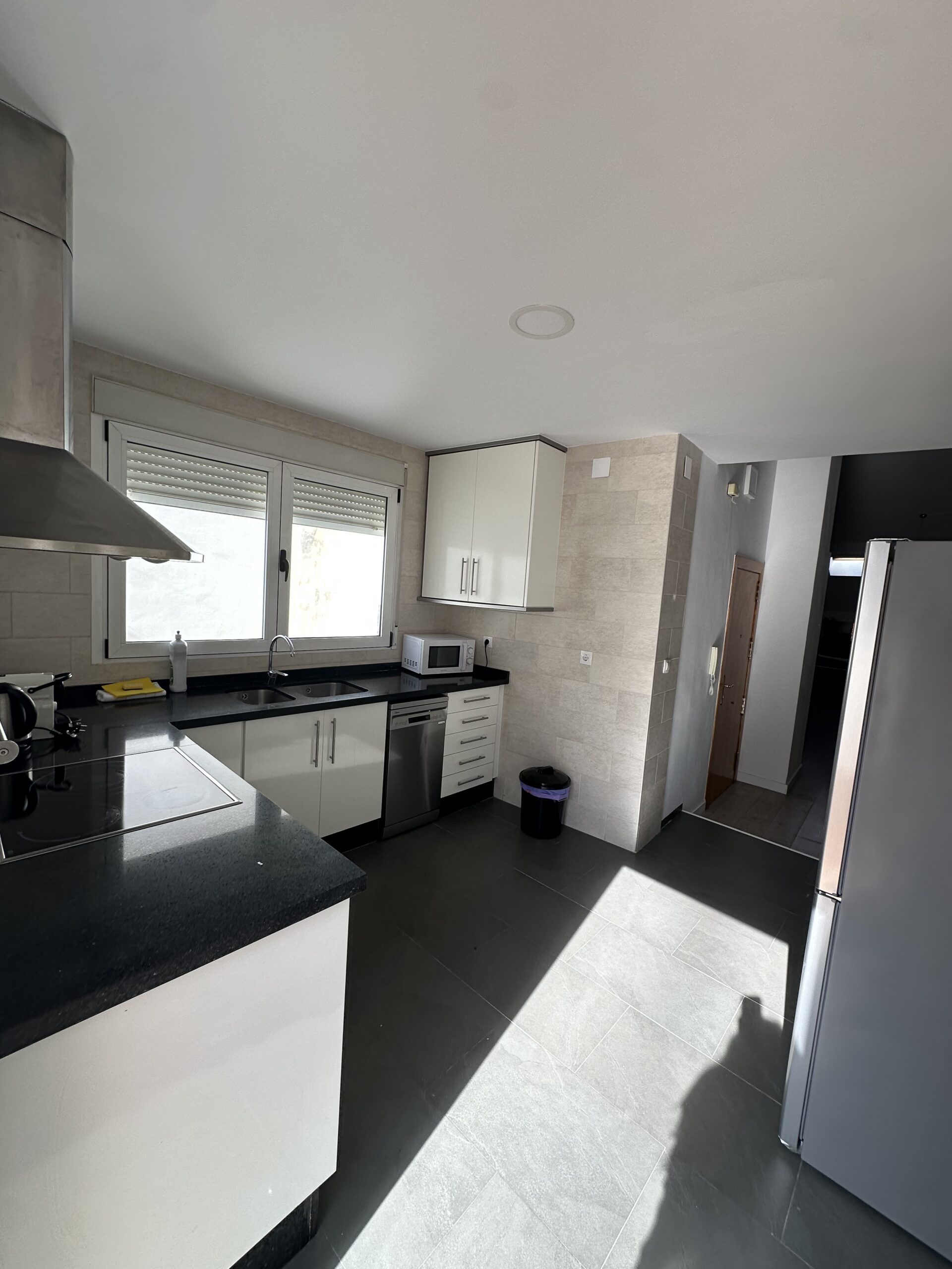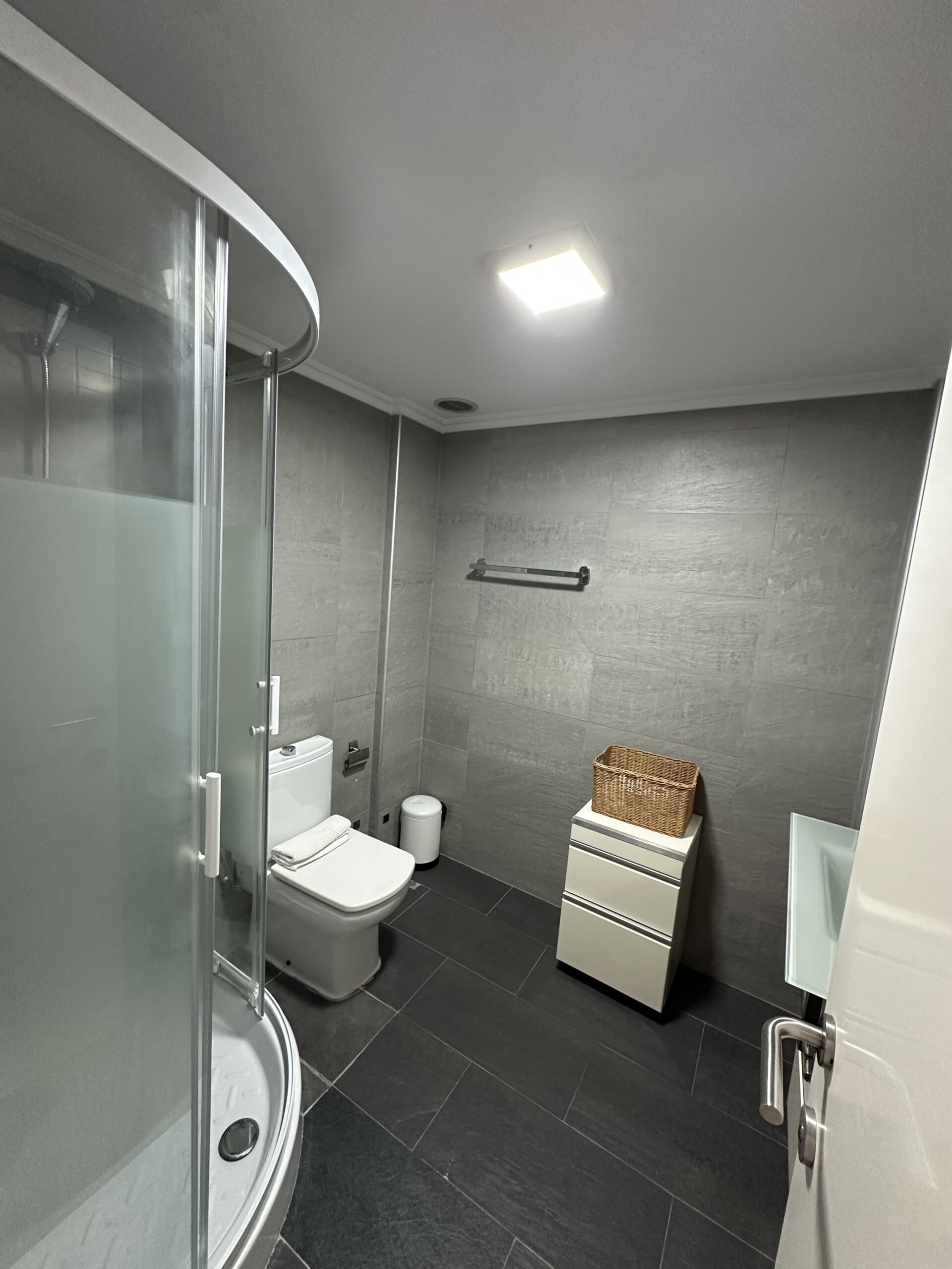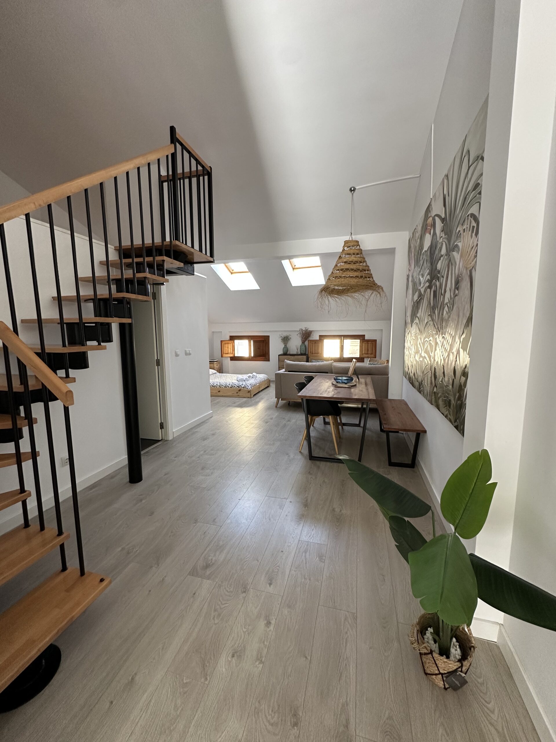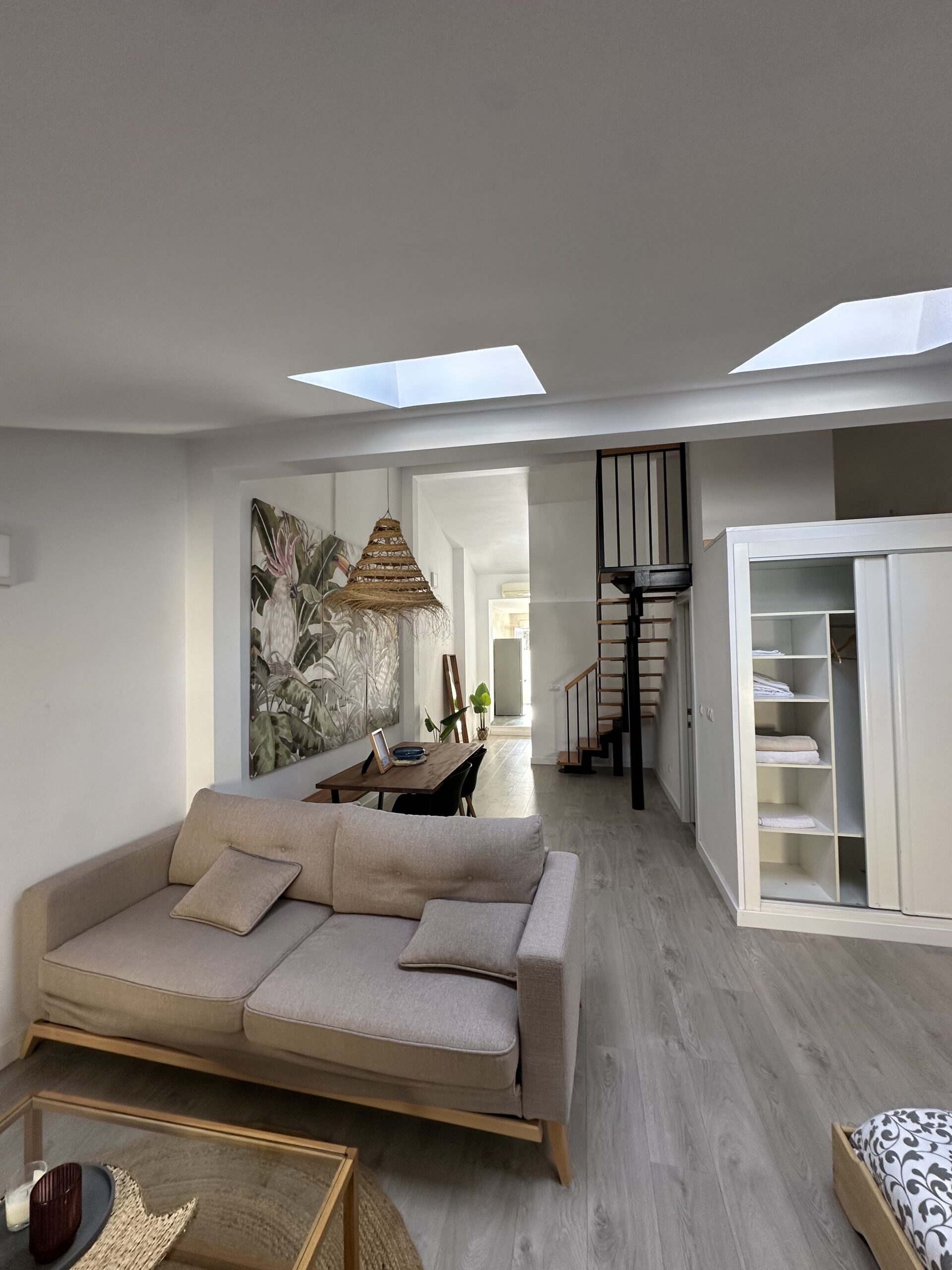 La vivienda dispone de una cocina totalmente equipada con electrodomésticos, un amplio y luminoso comedor-salón-dormitorio que aporta gran sensación de espacio y confort, un pequeño espacio altillo y un baño completamente equipado que incluye toallas y secador. También tiene aire acondicionado para que el calor no te impida descansar en las, a veces muy calurosas, noches estivales.