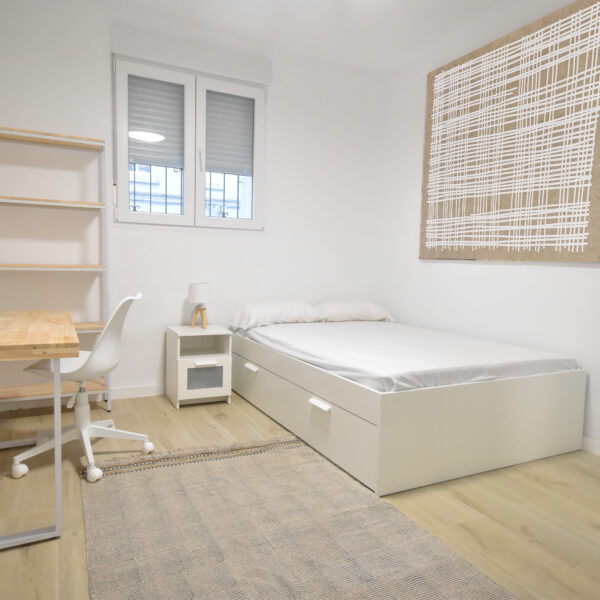 El piso cuenta con un ambiente amistoso, perfecto para compartir con otros jóvenes que estudian o trabajan. Disfruta de un amplio salón-cocina-comedor donde podrás relajarte en el sofá modular o preparar tus comidas en la cocina totalmente equipada. La gran mesa es perfecta tanto para disfrutar de una distendida cena como para una productiva tarde de trabajo en equipo. Además, cuenta con organización semana de la limpieza de zonas comunes, incluida en los gastos mensuales y todas las habitaciones tienen cerradura para mayor tranquilidad del inquilino.