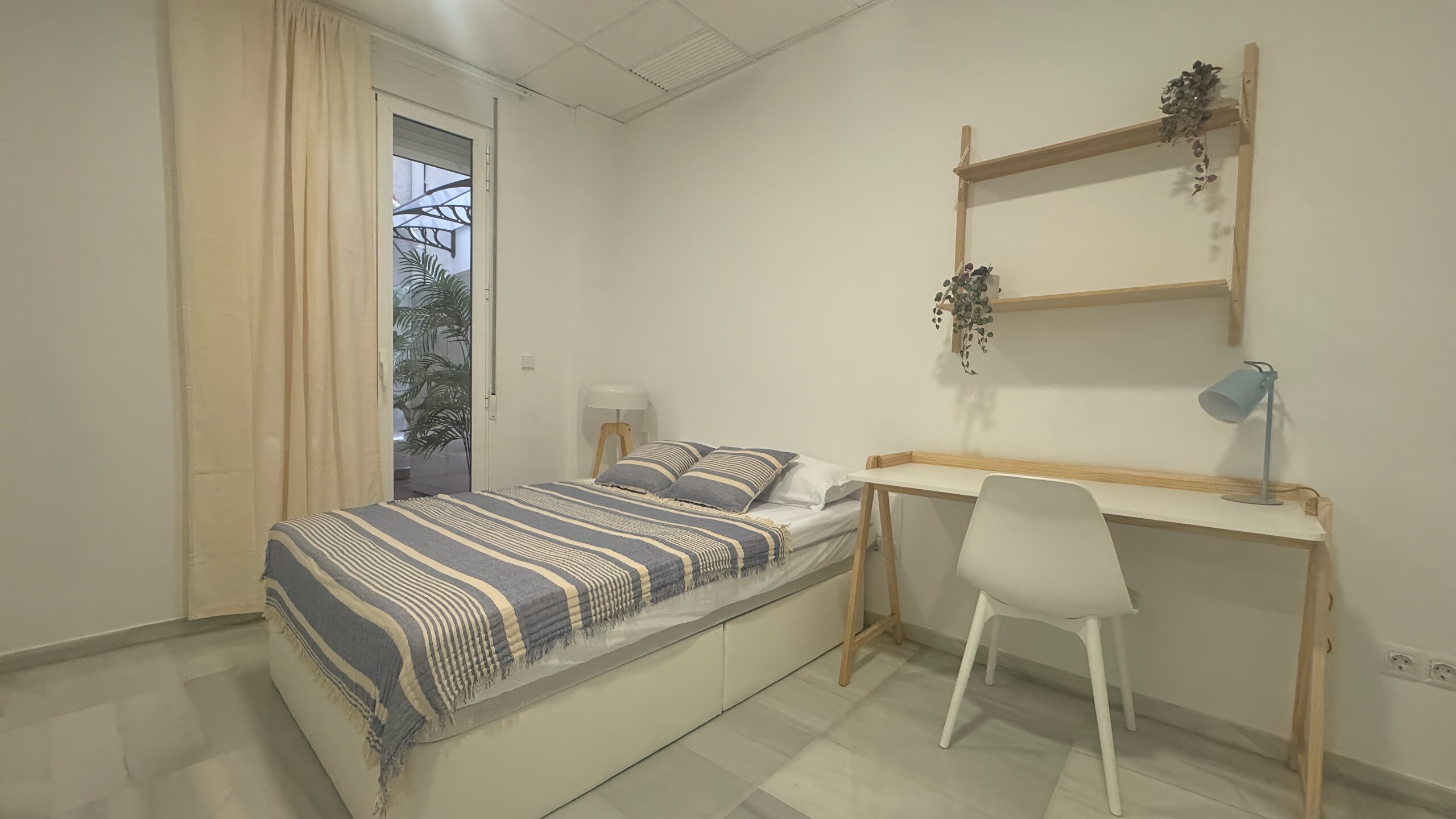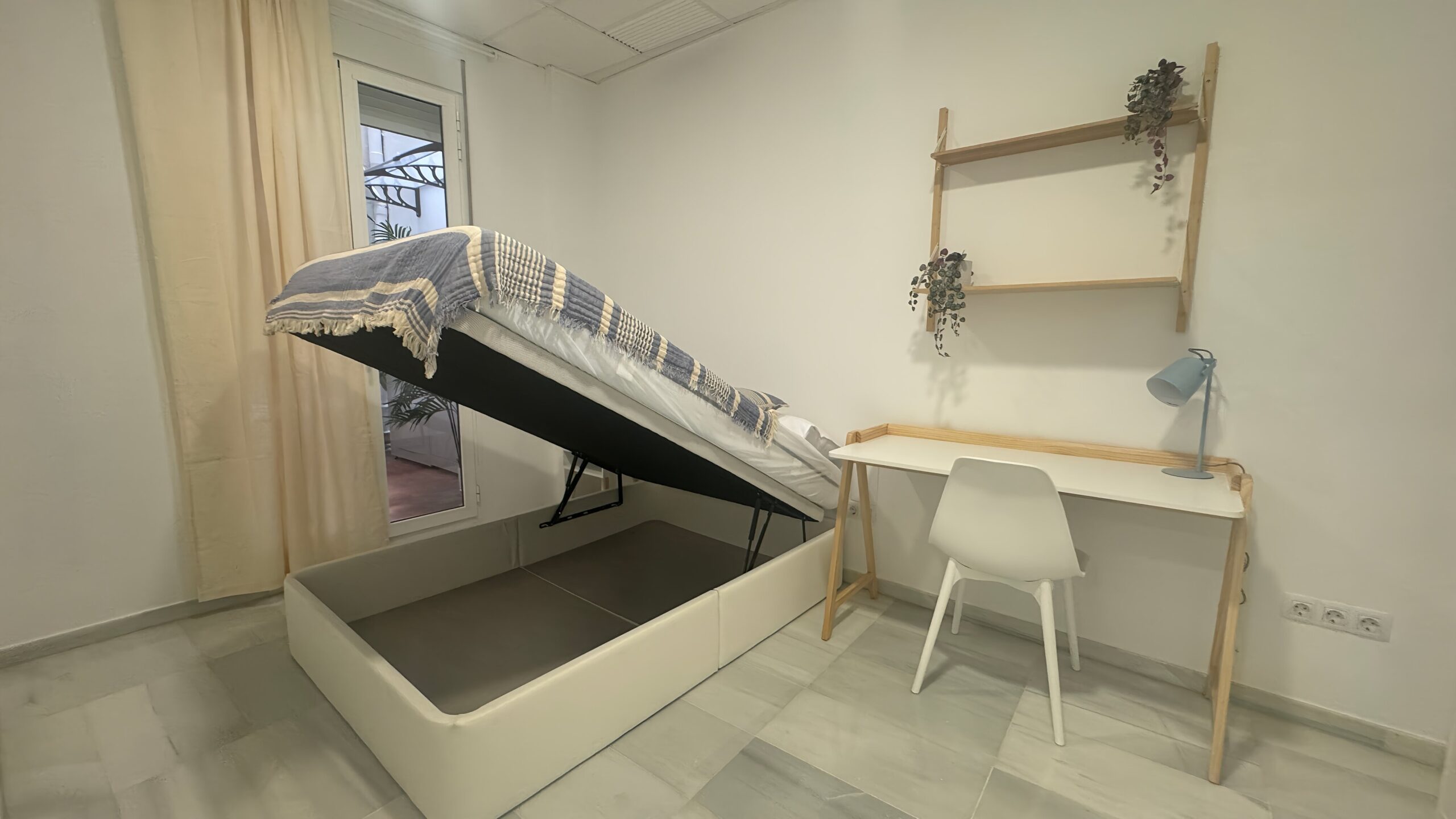 Habitación luminosa con abundante luz natural, ideal para crear un ambiente cómodo y agradable durante todo el día. Cuenta con cama con almacenaje inferior, armario y escritorio, ofreciendo un espacio funcional y bien aprovechado. Perfecta tanto para el descanso como para el estudio o teletrabajo. Un espacio acogedor, práctico y listo para entrar a vivir.