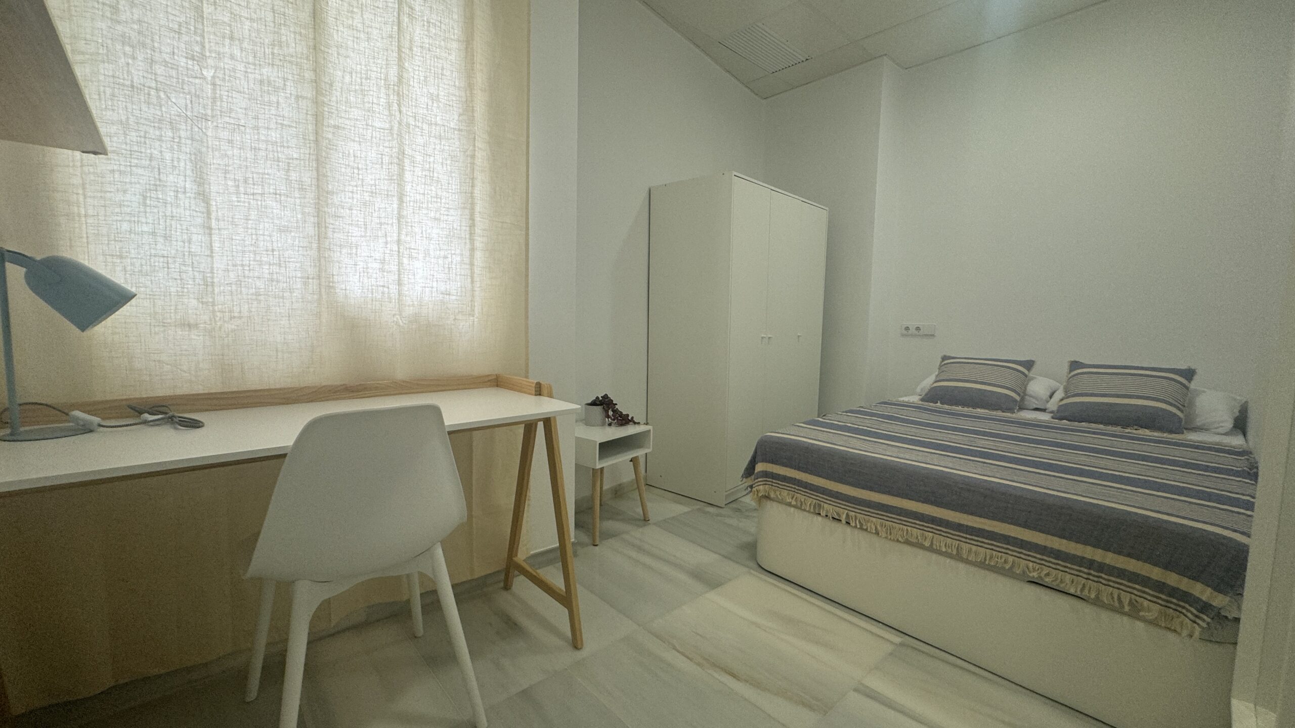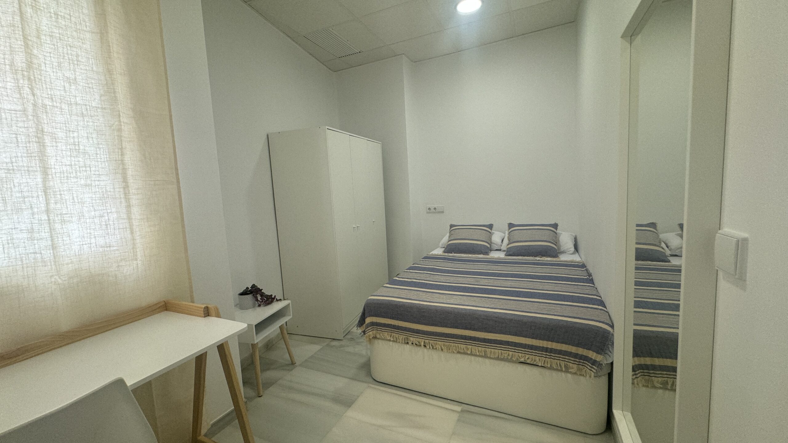 Habitación luminosa con abundante luz natural, ideal para crear un ambiente cómodo y agradable durante todo el día. Cuenta con cama con almacenaje inferior, armario y escritorio, ofreciendo un espacio funcional y bien aprovechado. Perfecta tanto para el descanso como para el estudio o teletrabajo. Un espacio acogedor, práctico y listo para entrar a vivir.