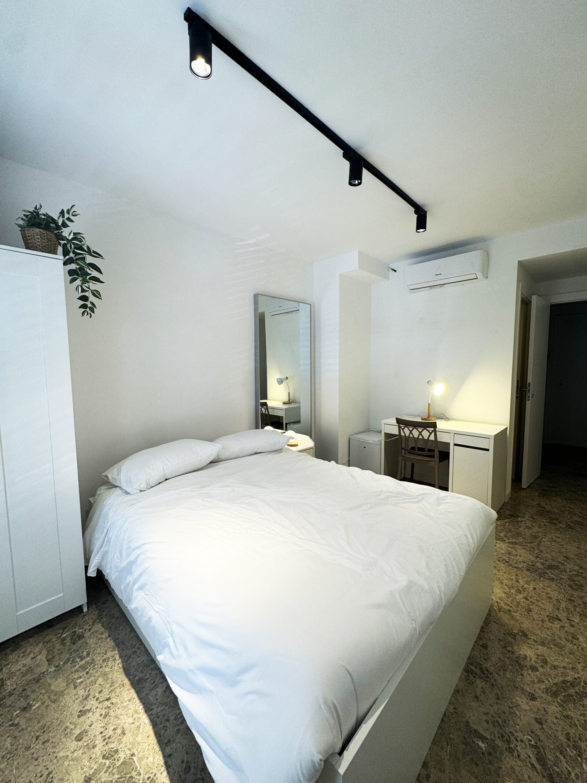 La habitación es luminosa y está totalmente equipada, ofreciendo el equilibrio perfecto entre privacidad y vida en comunidad. Dispone de baño privado, cama confortable con almacenaje, armario amplio y zona de estudio.