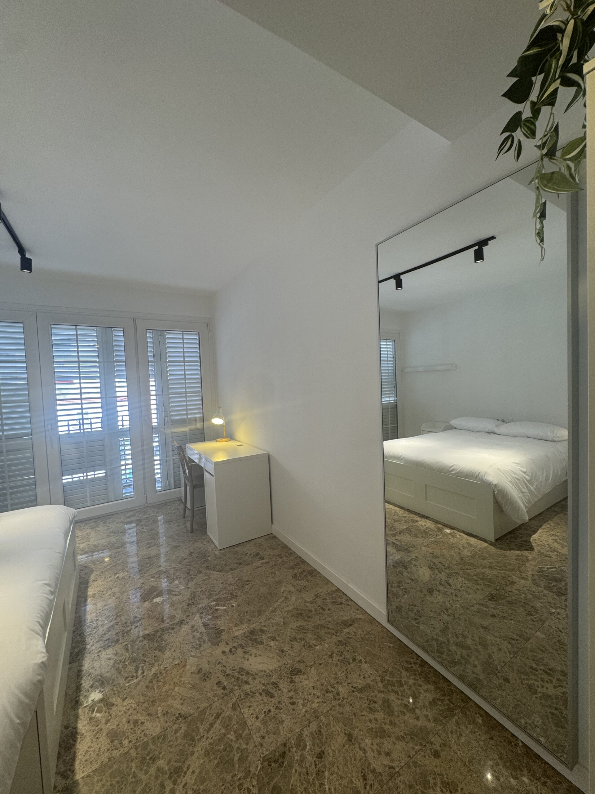 Habitación premium con baño privado  y balcón en un coliving de diseño cerca de la playa. Una forma diferente de vivir en Valencia, pensada para jóvenes profesionales y estudiantes que buscan comodidad, estilo y una convivencia tranquila.
