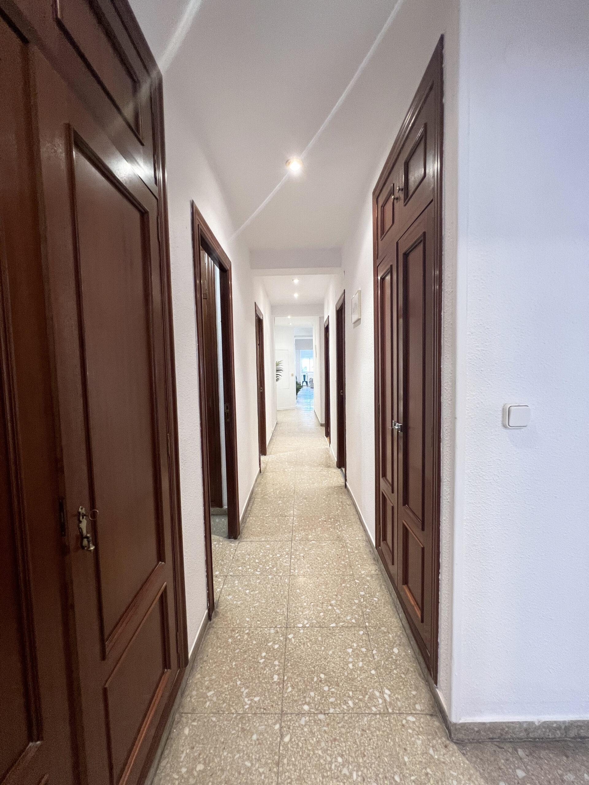 La vivienda dispone de ocho habitaciones, seis con camas dobles y una con cama individual, cuatro cuartos de baño (dos de uso privado para las habitaciones 7 y 8), cocina, salón-comedor y un amplio balcón. Disfrutarás de su agradable espacio al aire libre tanto en invierno como en verano.