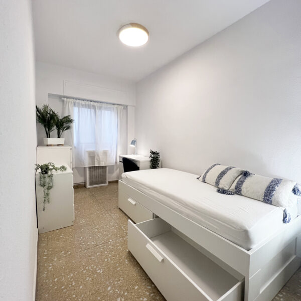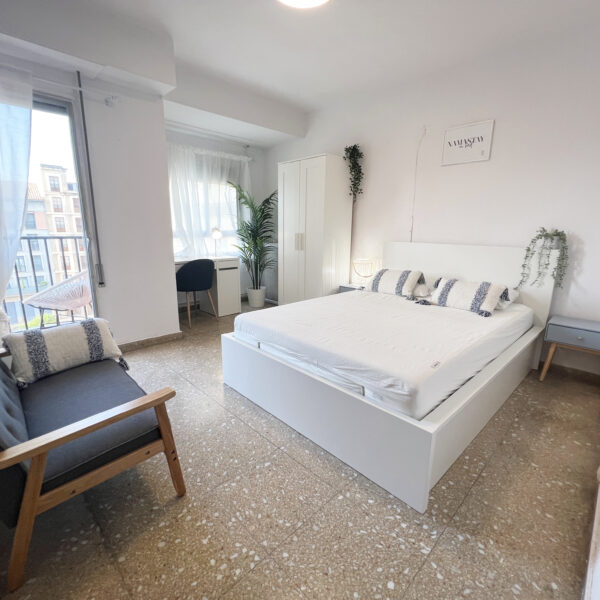 Esta preciosa vivienda está en un edificio que da a una plaza verde muy tranquila situada a un minuto andando del centro y a pocos minutos del resto de puntos de interés de la ciudad como la plaza del ayuntamiento, el barrio del carmen, la plaza de toros, la plaza de la virgen, la catedral,.. La playa está a un corto trayecto de tranvía. Además, está muy bien comunicado ya que a unos pocos minutos andando nos encontramos con múltiples paradas de autobús y metro, y con numerosos comercios.